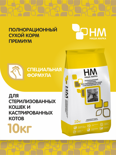 Сухой полнорационный корм для стерилизованных кошек и кастрированных котов "Наша Марка" Специальная формула – это отличный выбор для ежедневного рациона вашего питомца. Сбалансированный корм, разработанный с учетом потребностей стерилизованных кошек, обеспечивает полноценное питание, поддерживает здоровье мочевыделительной системы, прекрасный внешний вид и физическую форму животного. Защита ЖКТ: Надлежащая комбинация ингредиентов гарантирует правильное течение процесса пищеварения. Защита почек: Сбалансированный уровень минералов помогает сохранить здоровье мочевыводящих путей. Иммунитет: Высокий уровень иммунитета обеспечивает такой важный антиоксидант, как витамин Е. Корм отвечает всем требованиям, касающихся стерилизованных кошек и кастрированных котов.