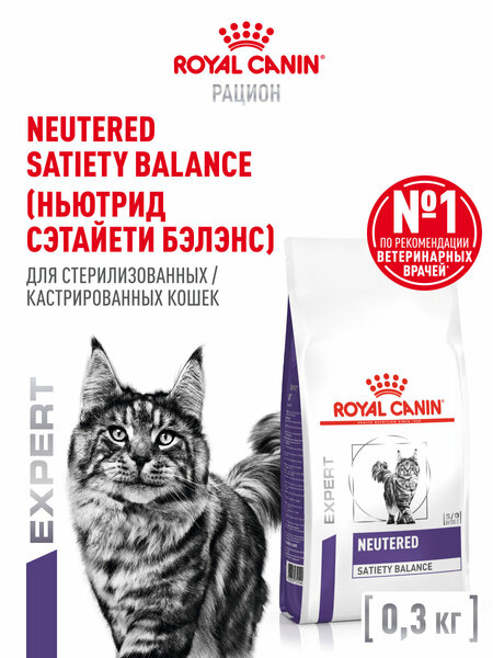 Сухой корм ROYAL CANIN NEUTERED SATIETY BALANCE (роял канин ньютрид сэтайети бэлэнс) - полнорационный корм для кошек - Для стерилизованных или склонных к набору веса взрослых кошек - С момента стерилизации до 7 лет. Формула помогает поддерживать оптимальный вес у кастрированных и стерилизованных кошек за счет умеренного содержания жиров и сочетания различных типов клетчатки, обеспечивающей быстрое насыщение и длительное чувство сытости.
