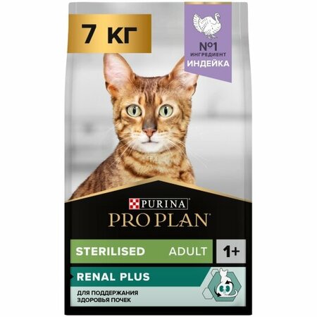 Сухой корм для стерилизованных кошек и кастрированных котов Pro Plan Sterilised RENAL PLUS с высоким содержанием индейки 7 кг
