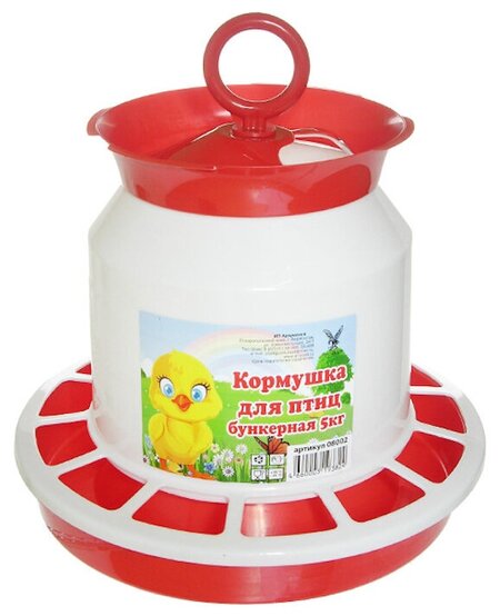 Кормушка для птиц, бункерная, 5л, до 5 кг корма, красная Бункерная кормушка для птиц объемом 5 литров предназначена для молодняка и взрослой птицы, включая перепелов, кур, бройлеров, уток, гусей и индюков. Благодаря своим размерам (диаметр 27 см и высота 22,5 см) кормушка устойчива и сбалансирована, что позволяет расположить ее на полу или в подвешенном состоянии. Кормушка оснащена прозрачным корпусом резервуара, что позволяет контролировать наличие корма и обеспечивает постепенное поступление свежего корма для птицы. Разделительная решетка предотвращает попадание цыплят на корм, обеспечивая безопасность и качество питания птицы. Вмещает до 10 кг сухого корма, что позволяет использовать кормушку на протяжении длительного времени. Заполнение кормушки осуществляется через верхнее отверстие, что делает процесс кормления удобным и простым. Изготовлена из качественных материалов, кормушка имеет красный цвет, что делает ее заметной на фоне окружающей среды. Обеспечьте своих птиц качественным и сбалансированным питанием с помощью бункерной кормушки для птиц.