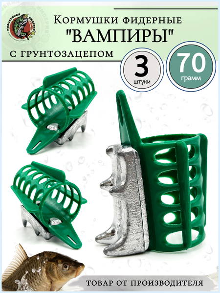 Основная задача кормушки для фидера – доставка порции прикормки в точку и её отдача при выматывании снасти. Кормушка для фидерной ловли – это основа монтажа, главный элемент оснастки. В наличии кормушка весом - 40 50 60 70 80 100 120 грамм. Варианты оснастки фидера подбираются в зависимости от условий ловли, особенностей водоема и поведения рыбы. Кормушки для фидера с грунтозацепами создавались для течения. При этом их форма почти не влияет на стойкость при течении, поскольку основное давление приходится на леску. Нужно подобрать такую кормушку, которая позволит комфортно и точно добрасывать фидер до нужной точки, причем точно и часто
