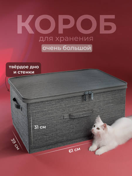 Органайзер для хранения вещей с крышкой, идеальное решение для вашего дома! Используйте его как органайзер для белья или короб для хранения игрушек, принадлежностей для ванной, книг и прочих мелочей. Удобные тканевые ручки позволяют легко перемещать корзину между комнатами. Используйте данный короб для переезда или переноски вещей. Наш органайзер оснащён крышкой на змейке, поэтому он может использоваться как сумка для поездки или как корзина для пикника. Это универсальный складной ящик, который значительно облегчит жизнь. Расположите органайзер в прихожей, спальне, гардеробной или даже на кухне, везде, где нужно организовать хранение одежды и других вещей. В корзинах найдется место для всего, от носков и футболок, до полотенец и джинсов. Это очень вместительные коробки для игрушек и отличный органайзер для детских вещей. Храните нижнее бельё, комплекты носков или книги, используя ящички как органайзеры в шкаф. Всё компактно и под рукой. Прочный материал и каркас обеспечивают устойчивость и лёгкость конструкции. Благодаря конструкции, кофр легко складывается и при необходимости убирается. Также, наши ящики для хранения могут использоваться как органайзер в кухонный шкаф. Ставьте моющие средства или храните кухонную утварь, обеспечив порядок, благодаря нашим тканевым органайзерам. В ванной наши органайзеры для хранения могут стать корзиной для полотенец или для аксессуаров. Стильный и функциональный дизайн прямоугольного органайзера с серой текстильной отделкой станет прекрасным дополнением к любому интерьеру. Размер бокса позволяет удобно разместить его на полках шкафа, в стеллаже или под кроватью. В открытых стеллажах они заменят выдвижные ящики. Больше не придётся тратить время на поиск вещей, наши коробочки кофры помогут всё держать под рукой, обеспечивая порядок и эффективность. Не откладывайте организацию пространства на потом. Приобретите комплект мягких тканевых контейнеров в стиле лофт и начните жить организованно уже сегодня!