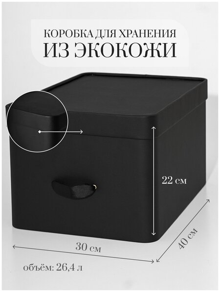 Коробки для хранения вещей Rompicato Cassa из экокожи помогут эффективно и красиво организовать пространство и компактно хранить любые предметы на открытых полках или внутри шкафов. Мы сделали коробку для хранения красивой и приятной на ощупь за счет использования качественной экокожи и превратили утилитарную вещь в предмет мебели и интерьера, которую захочется поставить на видное место. Коробка для хранения Rompicato хорошо держит форму за счет жесткой основы из толстого картона и выдерживает нагрузку более 10 кг. Внутренний чехол сшит из устойчивой к износу ткани, используемой в женских сумках. Коробка комплектуется крышкой, а расположенные на торцах ручки из репсовой ленты позволяют легко переносить коробку. Покрытие из экокожи практичное, влагоустойчивое и долговечное, а разнообразие цветов и размеров дает возможность выбора на любой вкус и интерьер. Длина изделия (см) – 40 Высота (см) – 22 Ширина (см) – 30 Вес – 1,5 кг Состав – эко-кожа, ткань, картон