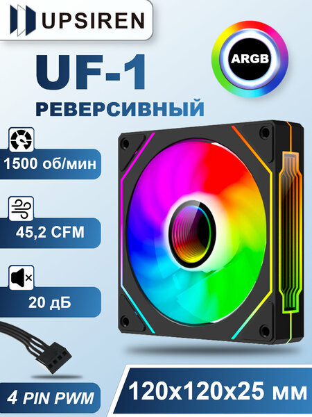 Корпусный реверсивный вентилятор Upsiren UF-1 Чёрный — это высококачественный и эффективный компонент для системы охлаждения вашего ПК. Вентилятор бренда UPSIREN диаметром 120 мм идеально подходит для установки на кулер, СЖО и в корпус компьютера. Этот корпусный вентилятор обеспечивает отличное охлаждение, одновременно минимизируя уровень шума благодаря использованию гидродинамического подшипника. С максимальным уровнем шума всего 20,8 дБ, данный вентилятор будет работать практически бесшумно, обеспечивая стабильную работу вашего компьютера. Высокая производительность вентилятора с максимальным воздушным потоком 45,2 CFM и скоростью вращения до 1500 об/мин позволяет эффективно охлаждать систему, обеспечивая её длительную и бесперебойную работу. Кроме того, вентилятор оснащён A-RGB подсветкой, что позволяет добавить яркие и красочные акценты в корпус вашего компьютера, создавая неповторимую атмосферу. Питание устройства осуществляется через 4-пин PWM коннектор, что позволяет точно регулировать скорость вращения вентилятора в зависимости от потребностей системы. Напряжение питания составляет 12 В, что является стандартом для большинства компонентов ПК. Если вы ищете качественный корпусный вентилятор, который не только обеспечит отличное охлаждение вашего компьютера, но и станет стильным дополнением, вентилятор Upsiren UF-1 Чёрный — идеальный выбор для вас.