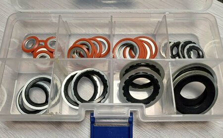 Сервисный набор металло-обрезиненных уплотнительных колец, сальников компрессора кондиционера, радиатора кондиционера, трубок кондиционера для GM, Opel, Chevrolet, Daewoo, Cadillak, Jeep и других автомобилей. В наборе 27 колец, 9 размеров. Материал – маслобензостойкая резина, металл. Кольца уплотнительные для автокондиционеров подходят для использования в автосервисе, на станции технического обслуживания или в гараже во время проведения работ по ремонту системы кондиционера автомобиля. Оригинальный номер: KOS2709