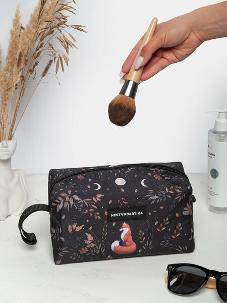 я долго хотела изделие Нестандартика с таким принтом, но не так явно, как сумка или рюкзак, как здорово, что есть косметички, незаменимая вещь в путешествии или в быту, радует своим таинственным рисунком меня каждый день.