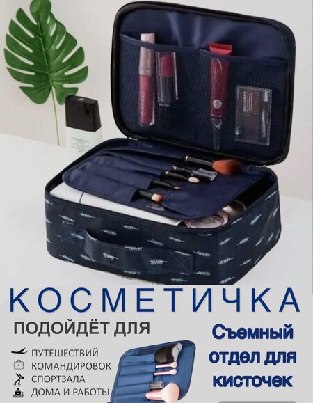 Достоинства:качественная косметичка. очень вместительная.молния не заедает.хорошо что есть отделение для кистей Недостатки:нет Комментарий:подойдёт для поездок.
