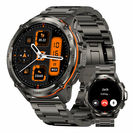 KOSPET TANK T3U умные/смарт часы Мужские часы военного образца, Поддержка GPS, водонепроницаемость на глубине 100 метров, голосовой помощник, мониторинг состояния здоровья и работают в режиме ожидания до 70 дней. С металлическим браслетом