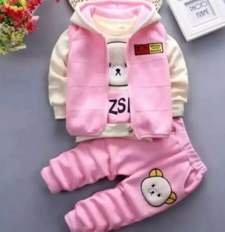 Костюм детский тройка с начесом Размер 120. Розовый Теплый и стильный костюм тройка для девочек состоящий из безрукавки, спортивных штанов и толстовки. Выполнен в розовом цвете, который подойдет как для повседневной носки, так и для праздничных мероприятий. Комплект одежды выполнен из качественных материалов, обеспечивающих комфорт и тепло в прохладную погоду. Начес на внутренней стороне изделий обеспечивает мягкость и уют. Костюм представлен в размере 120, что соответствует росту ребенка от 120 до 128 см. Выбирая этот костюм, вы обеспечиваете своему ребенку комфорт и стиль на каждый день.