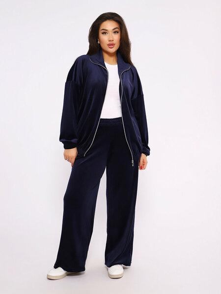 Костюм велюровый с принтом на спине: мода и комфорт Представляем вашему вниманию женский костюм велюровый с принтом на спине от бренда Руся. Этот стильный и удобный костюм станет отличным выбором для повседневной носки, походов и активного отдыха, танцев и спорт-стиля. Костюм состоит из олимпийки с воротником "стойка", застежкой на молнии на молнии и брюк палаццо, выполненных из качественного велюра. Материал подкладки – без подкладки, что обеспечивает комфорт и легкость в носке. Костюм представлен в темно-синем цвете, который легко сочетается с другими оттенками и подходит для любого сезона. Костюм имеет свободный силуэт, длинные рукава и укороченную длину низа брюк. Особенности модели включают карманы, манжеты, пояс на резинке и стрейч-эффект, что обеспечивает удобство и свободу движений. Принт на спине в виде пчелы и анималистического принта придает костюму оригинальность и индивидуальность. Костюм подойдет для беременных, так как имеет единую сетку размеров RU. Выбирая этот костюм, вы получаете стильный, комфортный и функциональный наряд, который станет вашим любимым элементом гардероба.