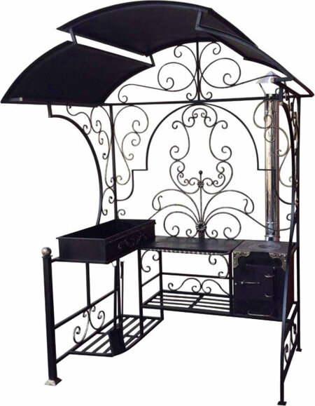 Кованый мангал "Элит Стандарт" с печью и дымоходом и жаровней