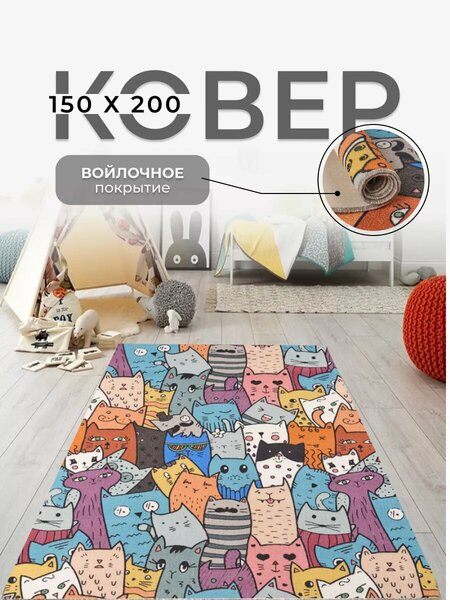 Ковер 150х200 комнатный превратит вашу гостиную в эстетически привлекательное пространство. Прямоугольный ворсовый палас на пол украсит спальню и даже кухню или большую прихожую. Благодаря забавному принту он отлично впишется в детский интерьер, а также в комнату подростка. Большой декоративный с коротким ворсом, он имеет универсальный размер и подходит для различных помещений. Такие напольные ковры - это отличные украшения для дома и дачи. Прикроватный аксессуар мягкий на ощупь. Выполненный на войлочной основе, он гипоаллергенный и безопасен для детей. Красочный, с уникальным рисунком “кошки”, он придаст обстановке современный вид. Покрытие включает качественные материалы, что облегчает уход и продлевает срок службы изделия. Оригинальный декор делает его подходящим как для девочки, так и мальчика. Подойдет коврик и для детской малыша. Такие большие универсальные товары дополняет общую эстетику зала своим стильным и утонченным дизайном. Милый и теплый с интересным дизайнерским принтом, он может быть кухонный или игровой. Его можно поместить под стол, диван и под другие предметы. Декор отлично дополнит скандинавский или классический стиль, расставив яркий акцент. Такие вещи необходимы в каждый дом. Стандартные размеры - 150200 см - позволяют поместить коаер в коридор. Дорогой дизайн делает его подходящим для малышей. Противоскользящий интерьерный полас идеален для ребенка, обеспечивая мягкое и безопасное место для игр. Ковр легко чистить, что актуально для семьи с животными. Яркий пушистый половик добавит теплоты и уюта в гостинную. Такие кавры - это стильные аксессуары, которые подойдут для комноты подростков. Он станет отличным подарком доя друзей и близких. Не упустите возможность купить этот превосходный аксессуар для вашего дома.