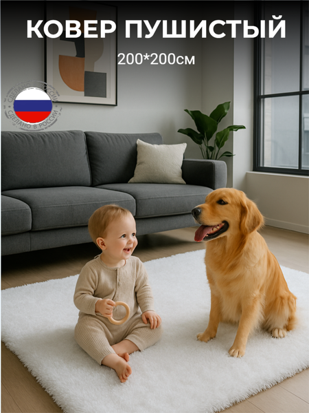 Стильный ковер с длинным ворсом станет прекрасным дополнением интерьера дома или квартиры. Пушистый коврик размером 200х200 см идеально подойдет на пол в любую комнату, а так же идельно подойдет, как накидка на диван. Его можно использовать как прикроватный к кровати в детскую и взрослую спальню, а также постелить возле дивана в гостиную. Меховой палас имеет большой, мягкий и приятный на ощупь ворс высотой 35 мм, который не выцветает, не линяет и отлично сохраняет тепло. Прямоугольный ворсовый ковер 200*200 имеет антискользящую прорезиненную основу, благодаря чему плотно прилегает к полу с любым покрытием, и качественно обработанные края, что предотвращает загибание. Половик из качественного искусственного меха выполнен из 100% полиэстера. Изделие не имеет запаха, проплешин и заломов. Комнатный ковёр с высоким ворсом можно пылесосить, он подходит для сухой и влажной уборки. Красивый белый коврик под ноги размером 200 на 200 см добавит уюта, комфорта и тепла в любое помещение. Напольный плюшевый половик можно купить для зала и спальни. Пушистой изделие 200 на 200, это лучшее решение для современного интерьера.