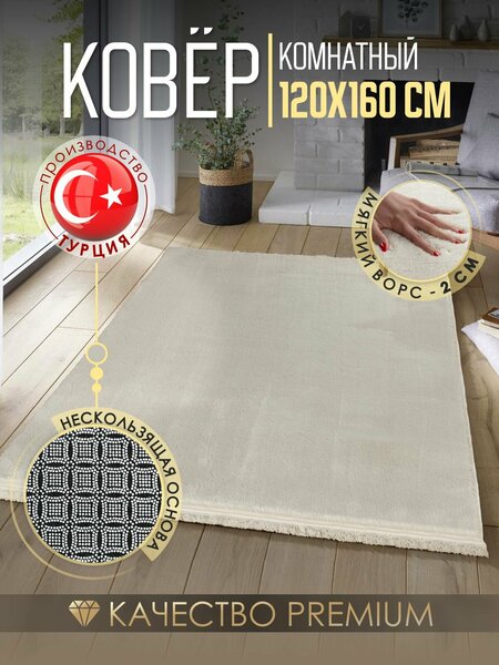 Размеры ковра составляют 120x160 см, что делает его идеальным выбором для различных помещений, включая гостиную, спальню и детскую комнату. Длина ворса составляет 20 мм, что создает пушистую текстуру и приятное ощущение при ходьбе босиком.