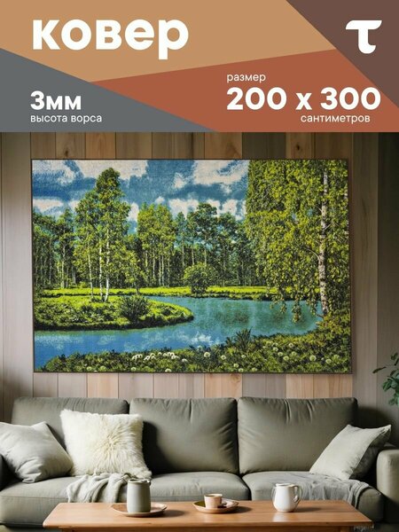 Ковер палас на пол настенный размер: 2,0х3,0 м (200 х 300 см) безворсовый в спальню гостиную на кухню на стену лес с рекой - 1 шт