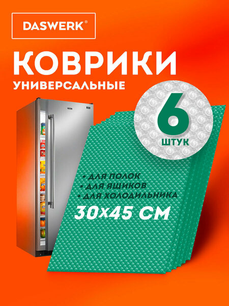 Представляем универсальные коврики DASWERK, которые идеально подойдут для вашей кухни и не только! Этот набор из шести ковриков размером 30х45 см станет незаменимым помощником в доме и на даче. Коврики защитят ваши полки и поверхности от влаги, жира и пятен, а также предотвратят появление царапин и других механических повреждений. Они отлично подходят для использования под тарелки, на полках холодильника и для сушки посуды. Благодаря антискользящей поверхности, ваши продукты и посуда останутся на месте. Изготовленные из экологически безопасного материала пэва, эти коврики легко чистятся и выдерживают температуру от -40°С до +60°С. Вы можете использовать их как коврик для сушки посуды или в ванной, а также подставить под горшки с растениями. Простота в уходе и возможность нарезки до нужного размера делают коврики DASWERK идеальным выбором для вашей кухни и других зон дома! Не упустите шанс сделать ваше пространство более удобным и стильным! • Назначение для: кухонных ящиков, под обувь, полок, сервировки, холодильника. • Размер: 30х45 см. • Форма: прямоугольная. • Фактура: круги. • Количество в комплекте: 6 шт. • Цвет: бирюзовый. • Материал: пэва. • Серия: Universal. • Артикул производителя: 609606.