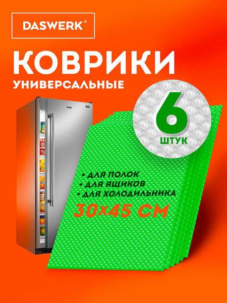 Коврик для холодильника на полку универсальный 30х45 см, набор 6 штук, для кухни, сушки посуды, сервировки стола, салатовый, Daswerk (Дасверк), 609605