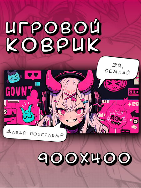Коврик для мышки большой 900х400 Демоница, Игровой коврик для мыши аниме XXL, розовый