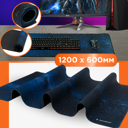 Коврик для мыши Gembird с рисунком "космос" прошитые края 1200х600х3мм ткань+резина MP-120-60-SPACE (коврик)