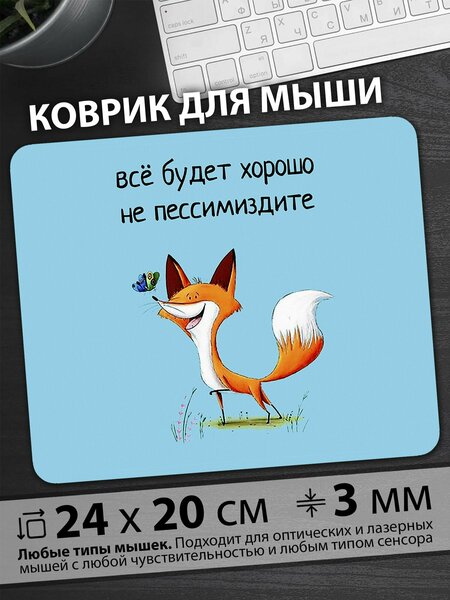 Противоскользящий / Антискользящий прямоугольный игровой резиновый коврик для компьютерной мыши с рисунком. Высокое качество и яркий принт этого коврика не оставит никого равнодушным. Повышенная износостойкость и лучшее соотношение цена/качество. Коврик подходит для всех типов мышей: оптических и лазерных с любой чувствительностью и любым типом сенсора. Гладкая тканевая поверхность обеспечивает полный контроль над движениями компьютерной мышки. Нескользящее основание из чёрной вспененной резины. Не очень большой и не очень маленький, идеального размера коврик, надёжно фиксируется на любой поверхности. Не скользит по столу и приятный на ощупь. Легко и удобно почистить и в отличие от ковриков с RGB подсветкой его можно стирать. Этот коврик будет отличным набором в сочетании с Вашим ноутбуком или клавиатурой. Оптимальная толщина коврика - 3 мм. Размеры коврика: 24 см x 20 см x 3 мм Базовые цвета коврика для мыши: голубой, оранжевый, белый, черный, зеленый, розовый, желтый, красный, коричневый, сиреневый Рассказ "Оптимистичный лисенок с бабочкой: радость, вдохновение, надежда, природа, жизнь" Лисёнок каждое утро просыпался с надеждой на новый день. Он взбадривался и делал зарядку, подмигивал своим отражением в ручье и радовался каждому солнечному лучу. В этот день его настроение было особенно приподнятым, ведь на горизонте появился яркий солнечный свет, который озарил всё кругом. Как же замечательно было чувствовать тепло, пронизывающее каждую травинку и листик. Этот день обещал быть особенным. Взявшись за свои обычные утренние дела, лисёнок заметил что-то потрясающе яркое и необычное порхающее рядом. Это была бабочка, раскрывшая свои яркие крылья наперекор всем сомнениям в мире. Лис не мог устоять и подошел поближе, чтобы разглядеть её лучше. Бабочка была удивительно красива: её крылья переливались множеством ярких цветов, и она неспешно махала ими, словно приглашая в свой волшебный мир. Лисёнок смотрел на бабочку, и его сердце наполнилось радостью и светом. Он чувствовал, как внутри него растет уверенность в том, что всё обязательно наладится. В этот момент лис понял: каждый маленький момент жизни уникален и полон смысла. Даже в солнечном свете и легком полете бабочки скрывается удивительная жизнь, полная гармонии и красоты. И это было вдохновляющим открытием. Этот незабываемый мгновенный контакт с бабочкой стал для лиса источником большого жизненного урока. Он научился радоваться простым маленьким вещам и не терять надежды. Жизнь всегда полна преград и препятствий, но именно от отношения к ним зависит наше счастье. Главное помнить: каждый день может стать волшебным, если только в сердце живет вера в лучшее. Солнце уже было высоко, когда лисёнок побежал к своим друзьям, чтобы рассказать о встрече с бабочкой. Он был полон энергии и вдохновения, желая поделиться своими мыслями и радостью с окружающими. Его позитив заразил всех, и скоро весь лес наполнился смехом и весельем. Лисенко знал теперь, что оптимизм – это сила, которая помогает двигаться вперед. Так лисёнок жил дальше, украшая каждый день яркими эмоциями и верой в доброе будущее. Каждый, кто слышал его историю о встрече с бабочкой, находил в ней что-то важное для себя. Этот маленький лисёнок стал напоминанием каждому: никогда не терять надежды и находить радость в самых прост