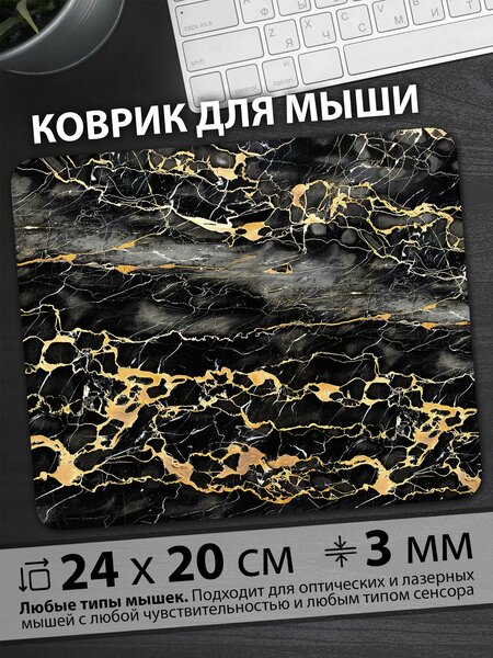 Противоскользящий / Антискользящий прямоугольный игровой резиновый коврик для компьютерной мыши с рисунком. Высокое качество и яркий принт этого коврика не оставит никого равнодушным. Повышенная износостойкость и лучшее соотношение цена/качество. Коврик подходит для всех типов мышей: оптических и лазерных с любой чувствительностью и любым типом сенсора. Гладкая тканевая поверхность обеспечивает полный контроль над движениями компьютерной мышки. Нескользящее основание из чёрной вспененной резины. Не очень большой и не очень маленький, идеального размера коврик, надёжно фиксируется на любой поверхности. Не скользит по столу и приятный на ощупь. Легко и удобно почистить и в отличие от ковриков с RGB подсветкой его можно стирать. Этот коврик будет отличным набором в сочетании с Вашим ноутбуком или клавиатурой. Оптимальная толщина коврика - 3 мм. Размеры коврика: 24 см x 20 см x 3 мм Базовые цвета коврика для мыши: черный, золотой, серый, белый, темно-серый, светло-серый, темно-золотой, кремовый, бронзовый, угольно-черный Рассказ "Изящные золотые линии на темном мраморе изображают путешествие бесконечности по вселенной" На поверхности мрамора вертелись удивительные узоры, которые могли бы заставить задуматься о вечности. Линии золота и черного сплетались в нем причудливыми формами, которые словно дышали, переливаясь на свету. Каждый фрагмент создавал ощущение, что это не просто текстура природного материала, а настоящая карта звёздного неба, полная загадок и тайных дорог. Под пальцами ощущалось прохладное прикосновение камня, которое дарило непревзойденное ощущение покоя и вечности. Изгибы золотых линий создавали иллюзию движения, словно подсвеченные прожилками жизни, которые никогда не замедляли своего хода. Этот камень мог стать настольным ностальгическим объектом, напоминая о миллиардах лет, прошедших с момента его рождения. Природа всегда создаёт самые изысканные произведения искусства, и этот мрамор не был исключением. Он воплощал в себе идеальное сочетание простоты и сложности, чего можно было достичь только благодаря многовековой работе воды и времени. Мрамор пленял не только своим внешним видом, но и подсознательно притягивал, заставляя задуматься о великой силе природы. В тишине можно было услышать, как камень рассказывает свою историю. О древних морях и магматических недрах, о славных вулканах и медленной трансформации. Это напоминание о том, насколько значим каждый момент времени, какими бы незначительными они ни казались на первый взгляд. Камень служил напоминанием о том, что всё имеет своё место и своё время. На этих золотых линиях, как на нотном станке, можно было сыграть симфонию времени – каждое звено было частью большого целого. И именно эта гармония придавала камню ту самую притягательную силу, которую нельзя было игнорировать. Любое пространство, украшенное таким мрамором, обретало энергию и живость, становясь больше, чем просто помещение. Каждый раз, когда на мрамор падал новый луч света, происходила метаморфоза – словно оживала новая история. Камень не был просто материалом для строительства – он был свидетелем прошлого, хранителем настоящего и пророком будущего. Каждое утро он встречал день новым блеском, показывая, что красота может быть вечной только тогда, когда её ключевые компоненты находятс