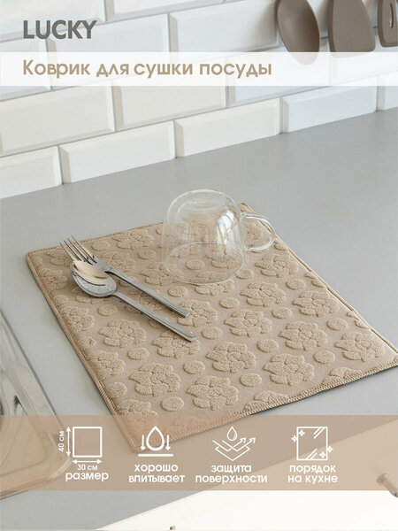 Коврик для сушки посуды - незаменимый аксессуар для кухни. Этот коврик станет отличным помощником, обеспечивая комфорт и порядок на вашей кухне. Коврик предназначен для сушки посуды, овощей и фруктов, зелени и ягод, непосредственно на столешнице или столе, либо как вкладку в сушилку для посуды. Благодаря своему составу сушилка для посуды мгновенно впитывает воду в 4 раза больше своего веса и высыхает очень быстро. Благодаря способности впитывать и испарять влагу, сушка для посуды быстро и эффективно высушит кухонную утварь, а также защитит стол от царапин и влаги. Сушилка для тарелок легко складывается, удобно хранить. Можно использовать как подставка под горячее, как коврик в кухонный ящик, как сушилка для фруктов. Коврик под посуду впитывающий, ухаживать за ковриком очень просто - достаточно постирать в мыльном растворе, сушить в расправленном виде, не гладить утюгом. Размер: 30х40 см. Материал: 100% полиэстер.