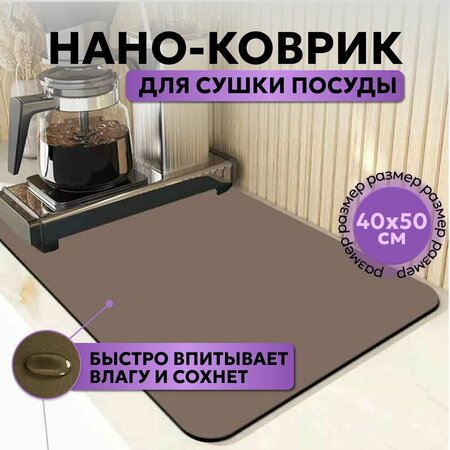 Коврик для сушки посуды 50х40 Представляем вашему вниманию инновационный коврик для сушки посуды, который станет незаменимым помощником на вашей кухне. Этот коврик для посуды сушки разработан с использованием новейших технологий, чтобы обеспечить максимальную эффективность и удобство в использовании. Основные характеристики: Размеры: Коврик для сушки посуды 50х40 см идеально подходит для любой кухни. Он достаточно компактен, чтобы не занимать много места, но при этом достаточно велик, чтобы разместить большое количество посуды. Материалы: Наш нано коврик для сушки посуды изготовлен из высококачественного впитывающего материала, который быстро поглощает влагу, предотвращая образование луж и разводов на вашей кухонной поверхности. Влаговпитывающий коврик для посуды обеспечивает чистоту и сухость. Технологии: Это не просто коврик для сушки, а настоящий нано коврик для сушки посуды. Благодаря специальной структуре волокон, коврик быстро впитывает влагу и способствует ее быстрому испарению. Впитывающий коврик для сушки посуды гарантирует, что ваша посуда останется сухой и чистой. Универсальность: Этот коврик для сушки посуды впитывающий подходит для различных видов посуды, включая стеклянные, керамические и металлические изделия. Коврик для сушки для посуды также можно использовать для сушки столовых приборов и кухонных принадлежностей. Преимущества нашего коврика для сушки посуды: Компактность и легкость: Коврик для сушки посуды 50х40 впитывающий легко складывается и не занимает много места при хранении. Вы можете легко убрать его в шкаф или оставить на столешнице. Простота в уходе: Коврики для сушки посуды можно стирать в машине, что обеспечивает долгий срок службы и поддержание идеальной чистоты. Силиконовый коврик для сушки посуды также легко очищается от загрязнений. Безопасность и экологичность: Коврик для сушки посуды силиконовый 50х40 изготовлен из материалов, безопасных для здоровья и окружающей среды. Он не содержит вредных химических веществ и полностью безопасен для использования. Высокая впитываемость: Впитывающий коврик для посуды мгновенно поглощает влагу, предотвращая образование луж и разводов, что делает его идеальным для ежедневного использования. Универсальность: Коврик для посуды сушки подходит для всех типов посуды, включая стеклянные, керамические и металлические изделия, а также кухонные принадлежности. Современные нано технологии: Нано коврик для сушки посуды обладает уникальной структурой, ускоряющей процесс сушки и предотвращающей размножение бактерий, что делает его безопасным и гигиеничным. Эстетичный дизайн: коричневый цвет коврика добавит свежести и легкости вашему кухонному интерьеру, гармонично сочетаясь с любым стилем. Простота в уходе: Коврик легко моется и быстро сохнет, обеспечивая долговечность и удобство в использовании. Экологичный материал: Диатомитовый материал коврика безопасен для окружающей среды и не содержит вредных веществ, что делает его идеальным выбором для заботящихся о природе. Почему наш коврик для сушки посуды — ваш лучший выбор? Эффективность и надежность: Влаговпитывающий коврик для посуды гарантирует быструю и эффективную сушку, обеспечивая готовность вашей посуды к использованию в кратчайшие сроки. Многофункциональность: Используйте коврик н