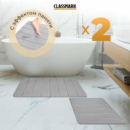 Набор ковриков для ванной и туалета 2 шт, противоскользящий Classmark с эффектом памяти 40х60см и 50х80см, серый