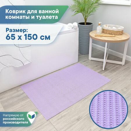 Коврик для ванны душа и туалета из вспененного ПВХ противоскользящий мягкий безворсовый 65х150см