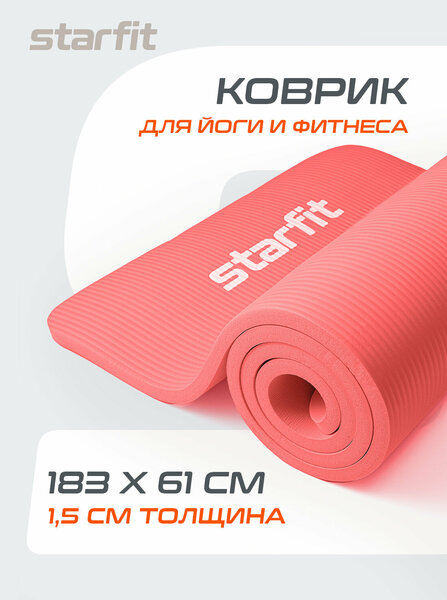 Коврик для йоги и фитнеса STARFIT FM-301 NBR 1,5 см 183x58 см коралловый