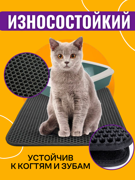 Коврик двухслойный под кошачий / собачий лоток и миски из эва, Коврик для кошачьего / собачьего туалета и лотка, универсальный коврик для животных. Часто любители кошек сталкиваются с проблемой разбросанного наполнителя вне туалета. Обычно это бывает связано с тем что котик, роясь в наполнителе, может опрокинуть его через лоток, а также наполнитель застревает между пальчиков лапок животного. Коврик со специальными отверстиями в форме сот сдерживает наполнитель с лапок котика, и то, что выпало из лотка, и не дает разлететься по всей комнате. Плотный коврик изготовлен из безопасного для людей и животных материала ЭВА. Коврик состоит из двух частей, плотная верхняя часть с перфорацией, и нижняя гладкая часть. Верхняя и нижняя части соединены между собой и держатся на липучках с двух сторон. Благодаря такой конструкции, вы без труда почистите коврик когда это будет необходимо, просто разъединив липучку и высыпав все в урну. Коврик можно мыть. Такой коврик подойдет не только для кошек, но и например для кроликов.