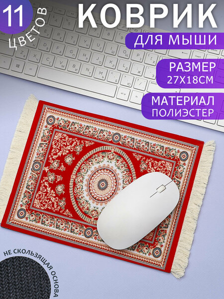 Коврик для мыши Персидский Ковер — это стильный и функциональный компьютерный аксессуар для вашего ПК, ноутбука или консоли. Идеальное решение для эффективной работы или увлекательной игры на вашем компьютере. Он изготовлен из высококачественной ткани, которая обеспечивает отличное скольжение мыши, обеспечивает долговечность и защиту. Коврик компьютерный на стол для мышки "Персидский Ковер" - это аксессуар, который станет незаменимым помощником для каждого пользователя. Коврик выполнен в форме прямоугольника размером 27х18 см. Это позволяет использовать его на большинстве столов, не ограничивая вашу свободу движений. Материал покрытия коврика - полиэстер. Это обеспечивает мягкость и комфорт при использовании, а также предотвращает скольжение клавиатуры и мыши. Ковер на резиновой основе, изготовлен из прочной резины 3мм, благодаря чему он не скользит по поверхности стола и обеспечивает надежную фиксацию. Вы можете быть уверены, что игровой коврик для мышки не сдвинется во время игры или работы и Ваша мышь будет всегда работать точно и без проблем. Особенностью данного коврика является принт в виде персидского ковра. Это не только придает ему уникальный и стильный вид, но и позволяет точно скопировать классический ковровый узор. Коврик "Персидский Ковер" - это не только функциональный аксессуар, но и отличный подарок для любого пользователя и геймера. Он подойдет как мужчине, так и женщине, парню или другу.