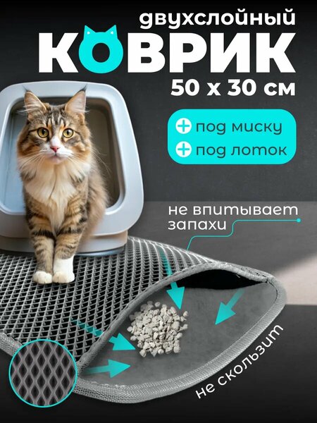 Двухслойный коврик для лотка - стильное и практичное решения для вашего дома. Универсальный и водонепроницаемый коврик из технологичного eva материала можно использовать для подложки под кошачий туалет и миску для питомца. Коврик состоит из нескольких слоев сшитых между собой лентой. Верхний слой - вспененные 3d ячейки в виде сот. Нижний-водонепроницаемая подстилка. Соты задерживают рассыпанный наполнитель и другой мелкий мусор от домашних животных, а подстилка не пропускает влагу, задерживая ее внутри. Вспененные коврики из эва материала мягкие и приятные на ощупь. Плотно прилегают к напольному покрытию и не скользят, в отличие от резиновых, силиконовых и ПВХ аналогов. Они почти невесомы и легко поддаются чистке. Достаточно промыть коврик под водой или пропылесосить. Двухслойный коврик ловушка не впитывает как воду, так запахи. Благодаря этим свойствам, эва коврик можно использовать в качестве подстилки под лоток кошки или собаки. Подстилка для туалета отлично очищает лапы питомца от прилипшего наполнителя. Эво пенка абсолютно безопасна для людей и животных. Коврик так же подойдет для подложки под клетки с грызунами и птицами. Если в вашем доме появился щенок, то наш коврик станет для вас спасением. Между слоями эва подстилки можно вставить одноразовую пеленку. Коврик спасет пленку от игривого малыша и приучит собаку к туалету. Наш современный и стильный двухслойный коврик сэкономит время на уборке и обеспечит чистые полы в вашем доме!