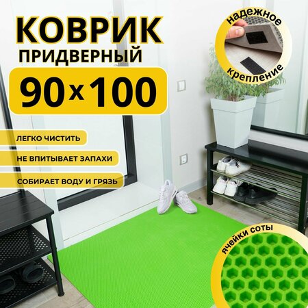 Коврик в прихожую придверный размером 90х100 см выполнен из качественного эва материала. Толщина 1см. Этот практичный аксессуар станет отличным дополнением вашего интерьера. Ковер идеально подходит для использования в прихожей, коридоре, а также на балконе, у входной двери и улицы. Эва коврик для обуви противоскользящий имеет современный ячеистый дизайн с выступами в форме сот. Для фиксации изделие крепится к полу липучками, которые входят в комплект. Изготовленный из прочного и влагостойкого материала, резиновый коврик легко очищается от грязи, что значительно облегчает уход за ним. С помощью такого входного коврика вы защитите пол от загрязнений и влаги, сохраняя чистоту в вашем доме. Его универсальный размер позволяет разместить любом помещении, а также использовать его как коврик придверный уличный перед входной дверью.