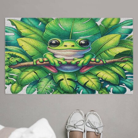 Коврик придверный в прихожую с принтом "Тропический лягушонок" 45 на 75 см , JoyArty