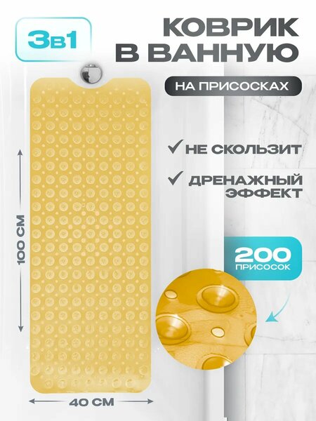 Представляем вам уникальный противоскользящий коврик для ванной большой, который превратит вашу ванную комнату в оазис комфорта и безопасности. Этот антискользящий коврик в ванную из ПВХ с размерами 100 на 40 см создан с заботой о каждой детали, обеспечивая надежное сцепление с ванной или полом благодаря 200 противоскользящим присоскам. Резиновый коврик в ванну несет в себе комбинацию стиля и функциональности, прекрасно вписываясь в интерьер любой ванной комнаты. У него есть сливные отверстия и полукруглый вырез, что делает его идеальным для установки вокруг слива воды. Он предотвращает возможность поскользнуться на скользком полу ванны и душа, особенно для детей. Коврик сделан из мягкого ПВХ материала с антискользящим покрытием и крепится к полу с помощью силиконовых присосок, которые не оставляют следов на поверхности. Этот безопасный коврик для ванной идеально подходит для безопасного купания детей и взрослых. Он имеет красивый яркий рисунок и подойдёт для душа или бассейна. Коврик изготовлен с рельефной поверхностью, которая тактильно приятна на ощупь и обеспечивает хорошее сцепление. Силиконовые присоски позволяют надёжно прикрепить и открепить коврик от любой гладкой поверхности, не оставляя следов. Этот антискользящий коврик для ванной является отличным решением для повышения безопасности в ванной комнате, особенно для пожилых людей. Он дает маленьким детям больше независимости во время игр и купания, не беспокоясь о том, что они поскользнутся. Родители также могут чувствовать себя спокойно, зная, что их дети находятся в безопасности. Коврик с антискользящим покрытием крепится к полу с помощью силиконовых присосок, которые не оставляют следов на поверхности. Антибактериальный силиконовый коврик массажный имеет рельефную поверхность и не имеющий сильного запаха. Это хороший подарок любимой подруге, сестре, коллеге или на крестины младенца. Conflate - с заботой о Вас!