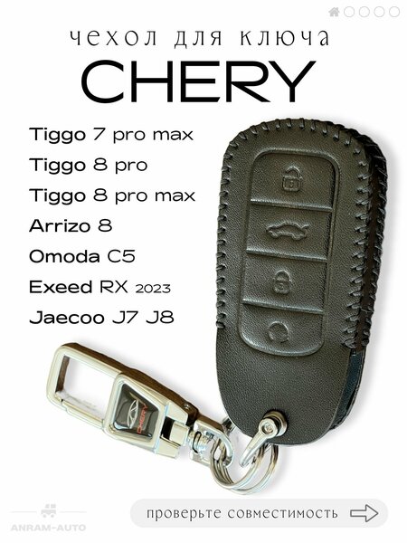Кожаный чехол для смарт-ключа Chery Tigo 8 Pro, 8 Pro max, 7 Pro max, Arrizo 8, Exeed RX и OMODA C5 - то стильный и защитный аксессуар, который поможет сохранить ваш смарт-ключ в отличном состоянии. Чехол выполнен из высококачественной кожи, что придает ему элегантный и прочный вид. Он плотно облегает смарт-ключ, защищая его от царапин, сколов и других повреждений. Кроме того, кожаный чехол обладает отличными тактильными свойствами и приятной на ощупь текстурой, что делает использование ключа более комфортным и удобным. Дизайн чехла специально разработан под модель смарт-ключа Черри Тигго 7 про, Черри Тигго 8 про, Черри Тигго 8 про макс, Омода с5, Эксид РХ или Чери Аризо 8, полностью соответствуя ее форме и размерам. Он имеет все необходимые кнопки и элементы управления, позволяя полностью функционировать брелку, не снимая чехол. В комплект с кожаным чехлом входит карабин, который выполнен из прочного металла и имеет форму замка. На нем расположен логотип марки машины Chery, что позволит подчеркнуть вашу приверженность определенной марке автомобиля и добавит индивидуальности вашему автомобильному пространству. Карабин можно использовать не только как аксессуар для автомобиля, но и как ключницу. Он крепится к чехлу, позволяет закрепить ключ к ремню, сумке или карману, что предотвращает его потерю или случайное падение. Также карабин может использоваться для удобного и быстрого доступа к ключу, когда он прикреплен к ремню. Кроме защиты, кожаный чехол добавляет стиль и индивидуальность вашим ключам. Его классический и универсальный дизайн подойдет к любому стилю одежды и аксессуаров. Закажите кожаный чехол для смарт-ключа сейчас и улучшите внешний вид и сохранность своего ключа! Чехол для ключа автомобиля может быть прекрасным сувениром, который можно дарить как подарок мужу, жене, другу, парню, девушке или подруге. Перед покупкой проверьте, соответствует ли Ваш автомобильный ключ предлагаемому чехлу (Фото смарт-ключа представлен на слайде)