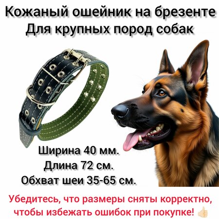 Представляем вашему вниманию прочный ошейник из натуральной кожи для средних и крупных пород собак от производителя. Данная модель имеет следующие характеристики: Ширина ошейника: 40 мм. Общая длина (от пряжки до кончика): 72 см. Рабочая длина (окружность шеи): 35-65 см. Ошейник изготовлен из высококачественной кожи крупного рогатого скота. Второй слой выполнен из прочного брезента. Металлофурнитура произведена в России и отличается надежностью. Этот ошейник идеально подойдет для ежедневных прогулок, занятий с кинологом и других активностей. Его прочная конструкция обеспечит надежную фиксацию и безопасность вашего питомца. Вся амуниция производится компанией "Надежный Малыш", которая зарекомендовала себя как производитель высококачественной продукции для собак.