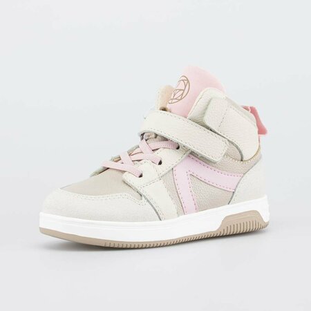 Высокие кеды для девочки созданны с учетом особенностей детской стопы, выполнены в сочетании светлых оттенков бежевого и розового. Верх изготовлен из натуральной кожи - дышащего материала, который создает оптимальный микроклимат внутри обуви. Носочная и пяточная части дополнительно усилены кожаными накладками с ПУ-напылением. Подкладка и формованная стелька из хлопка отводят от стоп влагу и дарят им ощущение уюта. Кожаные ботинки фиксируются на ножках при помощи липучки-велькро и шнурков-резинок, которые не нужно завязывать. Текстильный язычок украшен оригинальным принтом. Подошва из ЭВА (этиленвинилацетата) обладает несравненной легкостью и хорошей амортизацией. Обувь предназначена для детей дошкольного возраста, поэтому особое внимание уделено правильной конструкции: модель имеет пятку необходимой жесткости, приподнятость пяточной части, круглый носок. Сделано в России, Егорьевск.