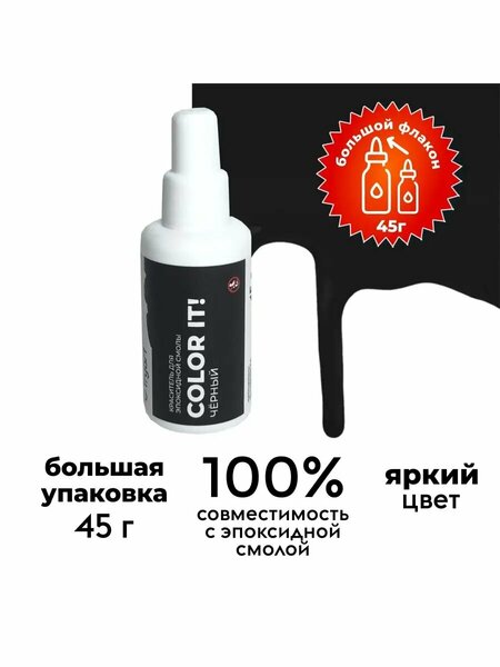 Черный красителей для эпоксидной смолы Tryart: насыщенный, глубокий черный цвет Красителей для эпоксидной смолы Tryart представляет собой большой флакон 45 грамм Особенностью красителей Tryart является их жидкая консистенция. Благодаря этому, они легко смешиваются и позволяют получить уникальные оттенки. Красителей черного цвета предназначен для декорирования эпоксидной смолы. С его помощью можно создавать неповторимые изделия для интерьера, такие как столешницы, декоративные элементы дизайна и многое другое. Для работы с красителем достаточно просто встряхнуть флакон и добавить в смолу. Черный цвет это всегда стильно и лаконично, тот кто занимается рукоделием и творчеством, понимает это. С его помощью можно создавать уникальные и красивые изделия, которые станут настоящим украшением вашего дома.