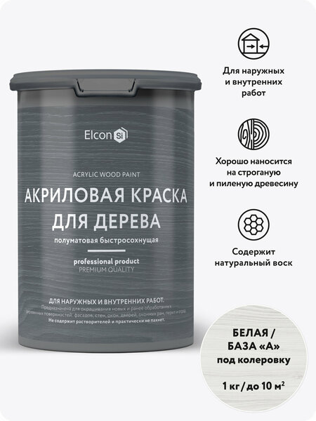 Краска для дерева Elcon — это комплексное решение для защиты и обеспечения безупречного внешнего вида деревянных поверхностей внутри и снаружи помещений. Сочетая в себе атмосферостойкость, биозащиту и удобство нанесения, она становится идеальным выбором для тех, кто ценит долговечность и эстетику. Свойства: • Подходит для наружных и внутренних работ • Имеет быстросохнущую формулу без запаха • Обеспечивает надежную защиту от влаги, УФ-излучения и перепадов температур • Содержит антисептические добавки против плесени, грибка и насекомых-вредителей • Наличие воска в составе усиливает гидрофобные свойства покрытия • Колеруется по системам SPIRIT, MONICOLOR, NCS, RAL • Экономичный расход: при нанесении на пиленую древесину — 1 л/6–8 м2, при нанесении на строганую древесину — 1 л/9–12 м2 Области применения: • Фасады, заборы, садовая мебель и беседки • Оконные рамы, двери, подоконники • Мебель, стеновые панели, элементы декора • Прочие новые и ранее обработанные деревянные поверхности Перед нанесением краски основание должно быть сухим и очищенным. Наносится в 2-3 слоя. Не предназначена для полов и поверхностей с постоянным контактом с водой. Указания к применению: 1. Основание должно быть сухим, очищенным от смол и других загрязнений. Непрочные старые покрытия тщательно удалить. 2. Перед окраской снаружи помещений рекомендуется предварительно обработать древесину трудновымываемым антисептиком. Это обеспечит защиту более глубоких слоев древесины от биопоражения. 3. Перед применением краску тщательно перемешать. При необходимости допускается разбавление по объему до 10% водой. 4. Наносить в 2–3 слоя кистью, валиком или краскораспылителем. 5. Особо тщательно прокрашивайте торцы древесины. 6. Не производить окраску в дождь или при повышенной влажности воздуха. Температура при проведении работ не должна опускаться ниже +5 °С. 7. После работы инструменты очистить водой. Ограничения: Не предназначена для полов и поверхностей с постоянным контактом с водой.