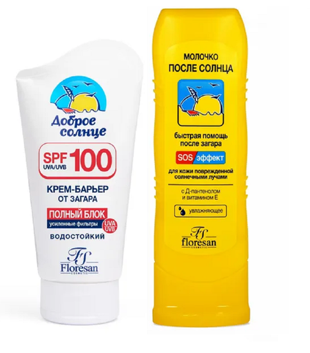 {"widgets":{"@card/UniversalPromoBadge":{"/content/page/fancyPage/universalPromoBadge":{"wrapperProps":{"margins":{"bottom":"3"}},"initialTime":1759604484385,"offerComposeId":"1104065616"}}},"meta":{"/content/page/fancyPage/universalPromoBadge":{"name":"@card/UniversalPromoBadge"}},"collections":{"productServiceSnippets":{"1104065616":{"productSnippet":{"type":"MODEL_CARD_LAYOUT","productPayload":{"title":{"value":"Крем-барьер от загара. Полный блок, водостойкий + Молочко после солнца Floresan Доброе солнце, 2х125 мл"},"badges":{},"wishlistButton":{"mskuId":4322716248,"businessId":102701577,"modelId":1104065616,"oskuId":4322716248},"rating":{"reviewsCount":8,"ratingCountStats":{"cnt3":0,"cnt4":0,"cnt2":0,"cnt1":1,"cnt5":13},"ratingValue":4.7,"ratingCount":14},"gallery":{"galleryType":"VISUAL","mediaItems":[{"type":"IMAGE","picture":{"height":1024,"width":900,"title":"Крем-барьер от загара. Полный блок, водостойкий + Молочко после солнца Floresan Доброе солнце, 2х125 мл","baseUrl":"https://avatars.mds.yandex.net/get-mpic/15100610/2a000001963e38d53e2fd141e03d13385251/"}},{"type":"IMAGE","picture":{"height":2000,"width":1500,"title":"Крем-барьер от загара. Полный блок, водостойкий + Молочко после солнца Floresan Доброе солнце, 2х125 мл","baseUrl":"https://avatars.mds.yandex.net/get-mpic/16418886/2a000001963e38d53726f60332176ea00ff4/"}},{"type":"IMAGE","picture":{"height":2000,"width":1500,"title":"Крем-барьер от загара. Полный блок, водостойкий + Молочко после солнца Floresan Доброе солнце, 2х125 мл","baseUrl":"https://avatars.mds.yandex.net/get-mpic/4888456/2a000001963e38d53e7aaca0a62ef2de83e5/"}},{"type":"IMAGE","picture":{"height":2000,"width":1500,"title":"Крем-барьер от загара. Полный блок, водостойкий + Молочко после солнца Floresan Доброе солнце, 2х125 мл","baseUrl":"https://avatars.mds.yandex.net/get-mpic/13736117/2a000001963e38d53ecc579375bd30b30a77/"}},{"type":"IMAGE","picture":{"height":2000,"width":693,"title":"Крем-барьер от загара. Полный блок, водостойкий + Молочко после солнца Floresan Доброе солнце, 2х125 мл","baseUrl":"https://avatars.mds.yandex.net/get-mpic/15100610/2a000001963e38d54783a8847bce0b029b93/"}},{"type":"IMAGE","picture":{"height":1035,"width":2000,"title":"Крем-барьер от загара. Полный блок, водостойкий + Молочко после солнца Floresan Доброе солнце, 2х125 мл","baseUrl":"https://avatars.mds.yandex.net/get-mpic/14873814/2a000001963e4b1cf84a4a5e9d75d838f578/"}}]},"snippetStyle":"NORMAL"},"baobabPayload":{"marketSku":"4322716248","type":"offer","isUltima":false,"modelId":1104065616,"snippet_type":"product","wareId":"out-of-stock","oskuId":4322716248,"hid":64174424,"isExpress":false,"vendorId":8509709}}}}}}