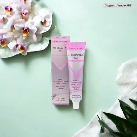Эффективный отбеливающий крем Achroactive Мах, созданный болгарскими косметологами, быстро и качественно устраняет веснушки и любую пигментацию. Уникальная формула препарата абсолютно безопасна, клинически исследована и подходит для любого типа кожи. Продукт содержит витамин С (аскорбиновая кислота), являющийся мощным антиоксидантом и широко известный своим осветляющим действием. Крем превосходно увлажняет и повышает защитные функции кожи. Имеющиеся в составе UV-фильтры обеспечивают надежную защиту от интенсивного солнечного воздействия, не давая коже терять упругость и препятствуя появлению морщин. Средство имеет густую консистенцию, белый, чуть перламутровый цвет и ненавязчивый аромат. Крем легко наносится на кожу, хорошо распределяется и быстро впитывается. Этот инновационный препарат станет незаменимым помощником в борьбе с пигментацией, выровняет тон кожи и окажет превосходный смягчающий эффект.