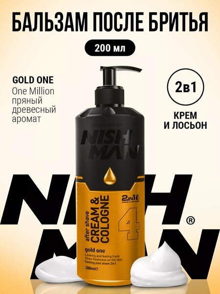 Крем лосьон после бритья 2 в 1 мужской / бальзам после бритья NISHMAN 04 Gold one, 200мл