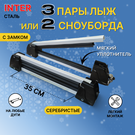 Крепление для перевозки лыж и сноубордов на крыше автомобиля INTER. Простое, удобное и надежное лыжное крепление для перевозки 3-х лыж или до 2-х сноубордов.