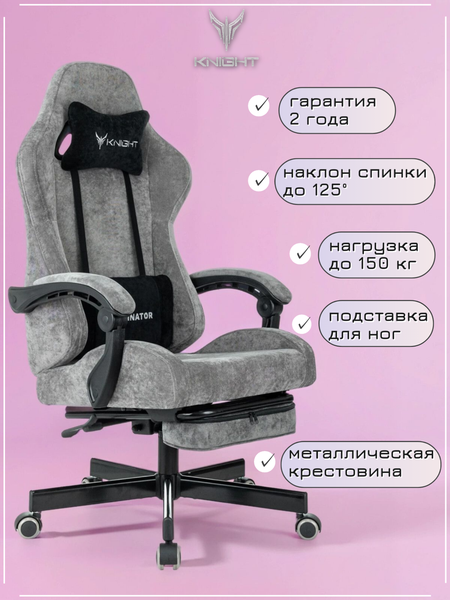 Компьютерное кресло для геймеров Knight Terminator. Цвет серый. С подножкой, с металлической крестовиной, с механизмом качания. Гарантия 2 года. Кресло игровое Knight Terminator - это не просто удобное и функциональное кресло, это стиль и комфорт в одном флаконе. Оно создано специально для тех, кто проводит много времени за компьютером. Благодаря продуманной конструкции, оно обеспечивает оптимальную поддержку спины и шеи, что позволяет избежать усталости и напряжения даже при длительном использовании. Кресло выполнено в стильном сером цвете Light-19, который легко впишется в любой интерьер. Кресло оборудовано системой газлифт, которая позволяет легко регулировать его высоту. Это позволяет адаптировать его под любой рост и обеспечивает максимальный комфорт во время использования. В целом, кресло игровое Knight Terminator - это отличный выбор для тех, кто ценит комфорт, функциональность и стиль.