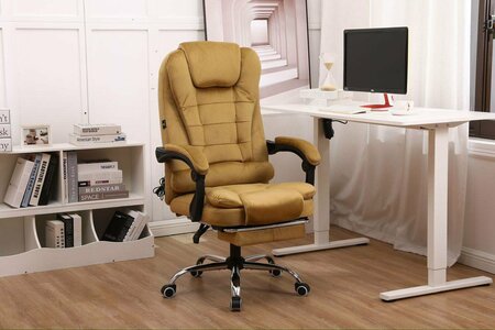 Кресло компьютерное для руководителя с функцией вибромассажа для дома и офиса с подножкой из велюра антивандального покрытия
