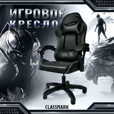 Кресло компьютерное игровое геймерское Classmark FT-088 офисное с подушками для спины и шеи на колесиках, черное, газлифт экокожа