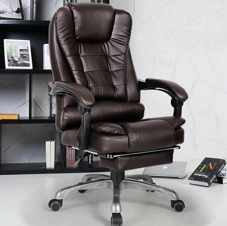 Описание: Маркировка товара 'Guangzhou Zhongchuang Packing Products Co, Ltd' внимание ! Ножки паук В которые крепятся колеса идёт из укрепленной хромированной стали ! Очень крепкий стул кресло ! • Выбор №1 среди руководителей по всему миру! • Данный класс кресел подарит вам ощущение комфорта при работе за компьютером. • Упругий наполнитель гарантирует мягкость, а экокожа – прочность и износостойкость. • Значительный показатель прочности по массе пользователя кресла офисного – 150 кг. Комфорт: Цвет коричневый • Отлично подходит, как для офиса, так и для дома. • Регулировка высоты сиденья и наклона спинки. • Поддерживающие подушки под спину и голову. • Встроенный массажёр. Характеристики: • Ножки: Сталь. • Материал обивки: Износостойкая экокожа высокого качества. • Наполнитель: Абсолютно безопасный и экологичный холлофайбер.