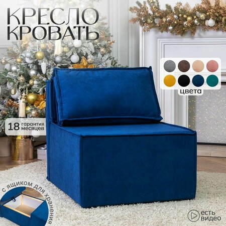 Кресло кровать раскладное мягкий Хит для дома и дачи / Диван трансформер 106х75х75 см в гостиную, спальню и балкон, складной со спинкой, раздвижной, с ящиком, велюр, синий